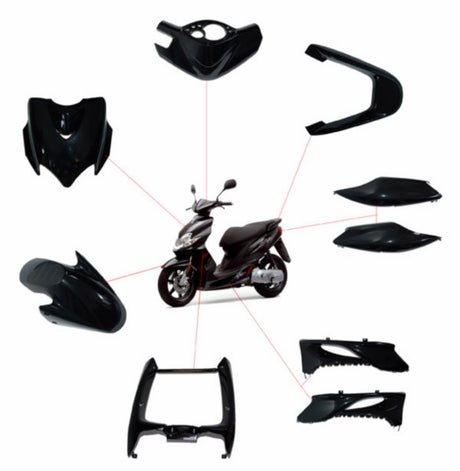 Op voorraad€195.95Eenheid prijs /Niet beschikbaarKappenset DMP zwart 9 delig Yamaha Jog / MBK Mach G