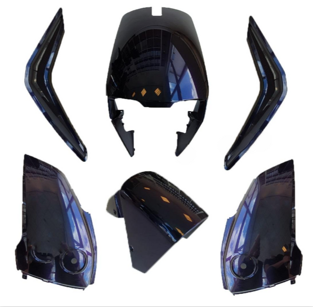 Complete kappenset voor de Super Soco CUX – ideaal voor het vervangen of upgraden van de carrosserie van uw elektrische scooter. Deze set biedt een perfecte pasvorm en is beschikbaar in diverse kleuren, waaronder cameleon en psychedelisch.