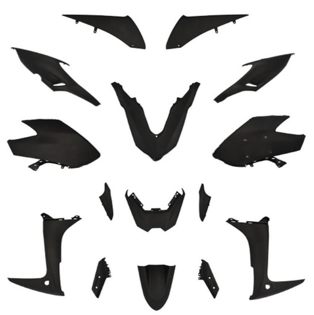 Complete 15-delige beplatingset in mat zwart voor Yamaha TMAX 560 modellen van 2020 en 2021. Deze hoogwaardige set is ontworpen voor een perfecte pasvorm en geeft uw scooter een moderne en sportieve uitstraling.