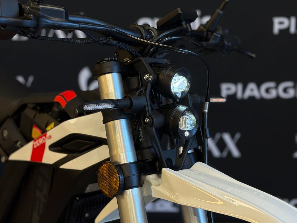 Dubbele hoge-lumen LED-koplampen verlichten de weg voor het off-road avontuur op de Zero XB, ongeacht het tijdstip van de dag of nacht.
